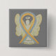 The awareness pin features the painting of a grey and gold awareness ribbon angel on a custom button pendant. Gold and grey awareness angel ribbon art lapel pins or buttons can be customised with personalised messages to make great cause buttons for fundraiser pendants for cancer or other causes, awareness pin gifts, or other special pendant events or awareness lapel pin for cause's occasions.