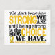 "We Don't Know How Strong We Are Until Being Strong Is The Only Choice We Have" (author unknown). Share this empowering sentiment while advocating Childhood Cancer awareness with our line of inspiring t-shirts, apparel, and merchandise featuring a variety of text fonts and gold Childhood Cancer support ribbon. Perfect gift idea for any Childhood Cancer warrior or survivor!