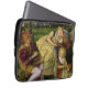 This design features art by the English painter Arthur Hughes (1832–1915). It shows three children, two girls and a boy, resting on a tree in the orchard of a mediaeval King of England. They are dressed in historical costume, perhaps Tudor dress. The boy is playing a lute, which is an antique musical instrument. There is also a dog resting its head on the lap of the smallest girl. The original artwork was painted in 1858.