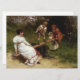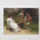 This design features a painting by the English artist Frederick Morgan (1847–1927). It shows a mother with three children playing on a seesaw. The mother is sitting on one end of the seesaw, holding it down, while the children are lifed up in the air on the other side of the seesaw. The children and their mother are in an idyllic landscape with flowering trees growing on a hillside behind them. The original artwork was painted by Frederick Morgan in 1898.