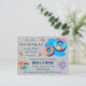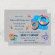 Children pool party birthday Postcard. Cool Boy Pool Party Birthday Invitation. Design features watercolor illustrations of summer and pool and the text ', free food, drinks and swimming - You in?'. The fun modern template is easy to customise with your own party details.