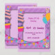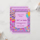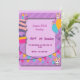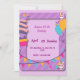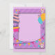 a vibrant purple-themed card featuring festive illustrations of a tiered cake, balloons.
