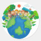 Children standing around the world classic round sticker