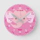 I bought the clock as a 'first time' grandmother. When I opened the package, I cried. the workmanship, material, color and the opportunity to personalize it was just perfect. I know that my grandson will be able to quickly learn to identify numbers, count and tell time! What a keepsake! I was totally happy with the printing, color choice and overall presentation of the clock!