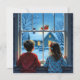 Children Watching Santa's Sleigh Christmas Holiday Card