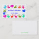Fun children's design on this colourful calling card filled with painted hand prints and hearts around the edge. Customise the text fields and even change the colour of the text, size, or style to truly personalise for your child.