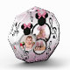 with dark purple shade background and three frames for three photos surrounded by musical notes.