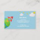 A Daycare Business Card with bright coloured flowers, yellow stars and a butterfly on a blue front. Reverse is designed with a child's toy rocket ship and yellow stars, on a blue background. To personalise, simply insert your details into our easy template, replacing the sample text.