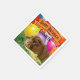 A cute ginger guinea pig in grass with colourful balloons overhead is the feature on this party napkin template design. Personalise the text fields with your celebration and name, remove the name or click customise to select a typeface style, colour, and size you like.