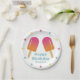 Ice pops and pastel colours in pink, blue and yellow adorn this paper plate. Customise these paper plates with the guest-of-honour's name. Perfect for a summer birthday party.