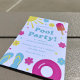 Welcome guests to your pool party with this bright and cheerful invitation. This design features your summer favourites, sunshine, ice pops, floaties and flip flops, in pastel shades of pink, blue and yellow. Perfect for any pool party or birthday party.