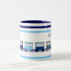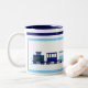 Cute childrens train in black and blues stretches across this white mug. Customise by adding any text you want. Makes a nice gift mug to fill with candy or small goodies.