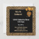 Cute black and golden hues with a cheetah print border and big cat with balloons on this jungle safari themed birthday party invitation with customer age.