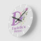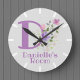 Design features Monogram & Name with Flowers either side in a water colour pastel style. Childs Bedroom Clock. Example name is Danielle. Change name as desired for anyone with a name beginning with D.