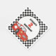 Child's red race car on black and white chequered flag 2nd birthday party personalised photo napkins. Text is fully customisable, so personalise for any child of any age. Contact me for assistance with your customisations or to request additional matching or coordinating Zazzle products for your party.