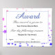 Teacher's School Award as a Certificate for school children. Personalise this award certificate to make it extra special with name, award details, date etc. Add the name of your school or institution. Background of colourful star shapes.