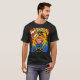 I give wanted to give this a 4 instead of a 5 because these Basic DARK T0shirts run unexpectedly SLIM or Narrow. Which is great if you do not have a potbelly, but I have a paunch. It isn't the shirt's fault that I've got a beer belly. The design and shirt itself is a quality cotton shirt. The color is more of a deep purple, but still a very pretty color. The Basic DARK T-shirts run a bit SLIMMER than the Basic Ts. The neck is a fraction narrower (or seems to be narrower) also. I'm a paunchy middle-aged woman and my neck is 12 inches (31cm) thick and the neckline fell about the same as in the photo of the man, and I had the desire to tug it a bit. So if you're a thick necked man or like loose shirts, be aware these are slimmer shirts. Once I get rid of my lockdown paunch it'll look great. The shirt washed well in cold water with no apparent bleeding. We don't have a dryer, so it hung dry. Did not shrink. Love the colors and the design. The design looks smaller on my shirt than it does on the model on-line. But still, it looks good on the shirt. The printing looks as it does on the model, just the size seems fractionally smaller. Washed garment in cold water, hung dry and design appeared unaffected.