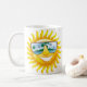 Brighten up your day with this summer mug featuring a smiling sun wearing cool goggles. On the other side of the mug is a caption saying "Chill out this summer" You can change or remove the caption by clicking Personalise this template. Perfect gift for the Summer lover in your life.