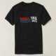 I give wanted to give this a 4 instead of a 5 because these Basic DARK T0shirts run unexpectedly SLIM or Narrow. Which is great if you do not have a potbelly, but I have a paunch. It isn't the shirt's fault that I've got a beer belly. The design and shirt itself is a quality cotton shirt. The color is more of a deep purple, but still a very pretty color. The Basic DARK T-shirts run a bit SLIMMER than the Basic Ts. The neck is a fraction narrower (or seems to be narrower) also. I'm a paunchy middle-aged woman and my neck is 12 inches (31cm) thick and the neckline fell about the same as in the photo of the man, and I had the desire to tug it a bit. So if you're a thick necked man or like loose shirts, be aware these are slimmer shirts. Once I get rid of my lockdown paunch it'll look great. The shirt washed well in cold water with no apparent bleeding. We don't have a dryer, so it hung dry. Did not shrink. Love the colors and the design. The design looks smaller on my shirt than it does on the model on-line. But still, it looks good on the shirt. The printing looks as it does on the model, just the size seems fractionally smaller. Washed garment in cold water, hung dry and design appeared unaffected.