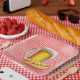 Chilli Hot Dog and Beer On Gingham Paper Plate