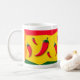 I like to buy and review my own work to ensure you get an outstanding product and I’m happy to give the Primary Colours Beach Football Mug 5 stars because it meets my expectations completely. Pleased with it I am. Zazzle mugs are well fabricated, microwave and dishwasher safe. And this yellow red and blue panoramic wraparound motif is sealed with a durable and sparkling Orca polished gloss glaze finish. It’ll never rub off! The size and energy of two jostling figures and a burly goal keeper fit the mug's circular shape well. There's momentum in the carousel effect as the two jostling figures repeat and move right around the mug and meet a burly goal keeper. Big sharp original images precisely drawn and delicately captured in blue and red with plenty of bright yellow! An ideal gift for anyone who plays ball! A fun gift for all beachball and football fans. A pair with the Retro Grey-Grain Beachball Player Mug. Available in two sizes and several styles including Black Ringer, Travelling, and Stern. Go have a peek!