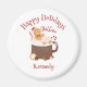 This festive and heartwarming magnet features a smiling gingerbread cookie relaxing in a cup of hot chocolate, paired with the playful phrase “Chillin’” and the cheerful greeting “Happy Holidays.” Set in a cosy holiday theme with warm tones and whimsical charm, this design can be customised with your name or a loved one’s—making it perfect for gifting, holiday cheer, or personalised seasonal fun.