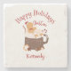 This festive and heartwarming coaster features a smiling gingerbread cookie relaxing in a cup of hot chocolate, paired with the playful phrase “Chillin’” and the cheerful greeting “Happy Holidays.” Set in a cosy holiday theme with warm tones and whimsical charm, this design can be customised with your name or a loved one’s—making it perfect for gifting, holiday cheer, or personalised seasonal fun.