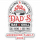 Chilling and grilling Dad's Bar and Grill- serving cold brews and good times- black and red vintage typography design with a customisable text in red to personalise this year's fathers day celebration.