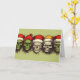 Embrace the spooky side of the holidays with our "Chilling Cheer: A Bone-Chilling Christmas Lineup" card. This macabre collection showcases a row of skeletal figures, each sporting a festive Santa hat with a wickedly joyful twist. Their glowing eyes and eerie grins make for a thrilling departure from traditional holiday imagery. Perfect for those who revel in the hauntingly merry atmosphere of a gothic Christmas, this card is bound to be a memorable way to spread festive fear!