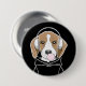 The design features an illustration of a relaxing beagle wearing headphones and blowing pink bubblegum. With your personalised favourite background colour, it makes a cute, funny, and unique pinback button for dog lovers.