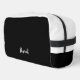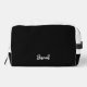 The design features an illustration of a relaxing beagle wearing headphones and blowing pink bubblegum. With your personalised text and favourite background colour, it makes a cute, funny, and unique toiletry bag.