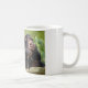 Chimpanzee on plank and eating a bark tree postcar coffee mug