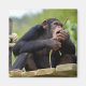Chimpanzee on plank and eating a bark tree postcar magnet