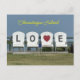 A postcard from Chincoteague Island. Features chairs spelling out the word LOVE.