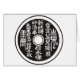 A black and white graphic of a Chinese coin covers the front of the shirt