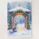 Celebrate the season with this beautifully illustrated Christmas card featuring an elegant Chinese Crested beside a decorated winter gazebo. Evergreen garlands, glowing lanterns, and soft snowfall create a peaceful watercolor holiday scene perfect for dog lovers. The blank interior provides plenty of room for personal greetings, making it ideal for festive correspondence, gifting, and breed-themed stationery.