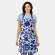 Chinese Dark navy blue floral pattern on white Apron