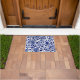 Chinese Dark navy blue floral pattern on white Doormat