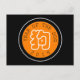 Customisable white ideogram of dog with double orange and white circles + black lettering on postcard with customisable black background colour. Available in 6 colours. Perfect for Chinese New Year of the Dog 2018 or birthday (people born in Dog Year).----- "The Dog (狗) is one of the 12-year cycle of animals which appear in the Chinese zodiac related to the Chinese calendar. The Year of the Dog is associated with the Earthly Branch symbol 戌. The character 狗 refers to the actual animal while 戌 refers to the zodiac animal. (...) People born within these date ranges can be said to have been born in the "Year of the Dog", while also bearing the following elemental sign:
