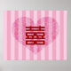 Chinese Calligraphy Symbol Text of Double Happiness Traditionally used for Wedding Celebration with Polka Dots Heart on Auspicious Festive Pink Striped Background Illustration Drawing Poster