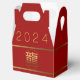 Golden Chinese Dragon ideogram with an embossed digital effect on transparent background. Design on corporate gable favour box gift with texts: HAPPY NEW YEAR, large 2024 and business name address on dark red background. You can easily change text (font, colour, size and position), background colour, size of the design by clicking the customise button. Available in cube favour box and more... Matching home products, office products, craft supplies, greeting card and more... Perfect for Chinese New Year of The Dragon or Birthday (people born in Dragon year). ------