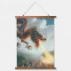 A Chinese style dragon diving down from the sky breathing fire on a small village. By martinspixs.