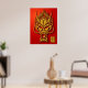 Chinese Dragon Illustration on Auspicious Red Background with Chinese Calligraphy Poster