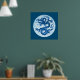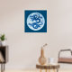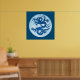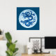 Poster in a Chinese dragon pattern adapted from antique porcelain china, in deep indigo blue and white on a soft swirled background of clouds
