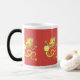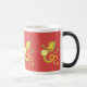 A morphing mug to surprise the recipient, with a golden Chinese Dragon on a rich, deep red background, carrying a lantern, from a handpainted illustration by Judy Adamson. Other products with this design are available from my store.