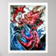 Chinese Dragon Wall Art Print by William Zierfus. The classic Chinese Dragon Samurai Art in original form by the famous artist William Zierfus. Drawn in modern two tones with state of the art depth abundant aqua hue effect. This piece is a one of a kind original that was never reproduced. Due to public demand his work has been brought to light for the first time ever.