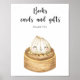 Celebrate with this watercolor cutie dumpling! Chinese dumpling in a wood plate. Baby shower party!