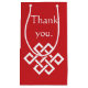 Package gifts for your attendants, groomsmen, family, and anyone else that deserves a little something special in these gift bags, perfect for any wedding or event. The front of this cherry red bag is decorated with a white Chinese good luck knot and a simple, "Thank you." The back has a matching good luck knot and sample text that you can customise to fit the details of your special day.