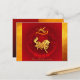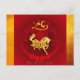 Double golden Horse paper-cut with Chinese lantern and golden Fu ideogram (meaning Luck), blossoms and Chinese greeting into small circles under the Horse + "Year of the Horse" in hand writing style onto a golden textured paper (image printed). Design on horizontal holiday postcard for Chinese New Year of the Horse 2026. Matching greeting card, square sticker, mug, (party supplies and more soon)... Perfect for Chinese New Year of the Horse 2026.