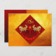 Double golden Horse paper-cut with Chinese lantern and golden Fu ideogram (meaning Luck), blossoms and Chinese greeting into small circles under the Horse + "Year of the Horse" in hand writing style onto a golden textured paper (image printed). Design on horizontal holiday postcard for Chinese New Year of the Horse 2026. Matching greeting card, square sticker, mug, (party supplies and more soon)... Perfect for Chinese New Year of the Horse 2026.